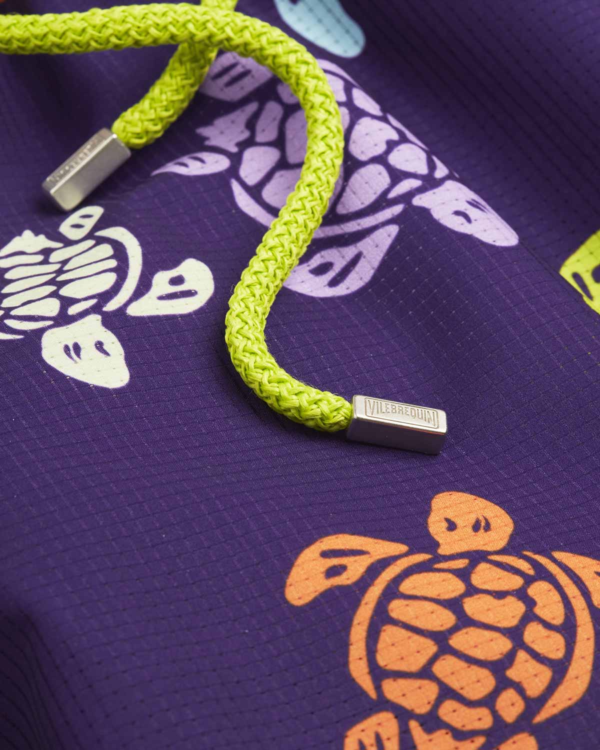 The ultra-lightweight version of our men’s swim trunks. At Vilebrequin, the manufacturing of our men’s swim trunks requires around thirty meticulous stages. And the result is unique suppleness and softness. What more could one ask for? Something as chic as it is original. Well, you need look no further. Our range of ultra-lightweight men’s swim trunks barely brush the skin of the most demanding of men. Fish patterns and nautical, exotic or more minimalist prints: Vilebrequin’s charming themes are printed on delicate and floaty materials in this men’s beachwear collection. A lightweight yet precisely cut range. And playfulness being part of Vilebrequin’s DNA ever since the very first father-son swim trunks concept back in the 1990s, all these swim trunks are available in different versions for the whole family. Lightweight, generous and alluring, this is holiday chic by Vilebrequin.